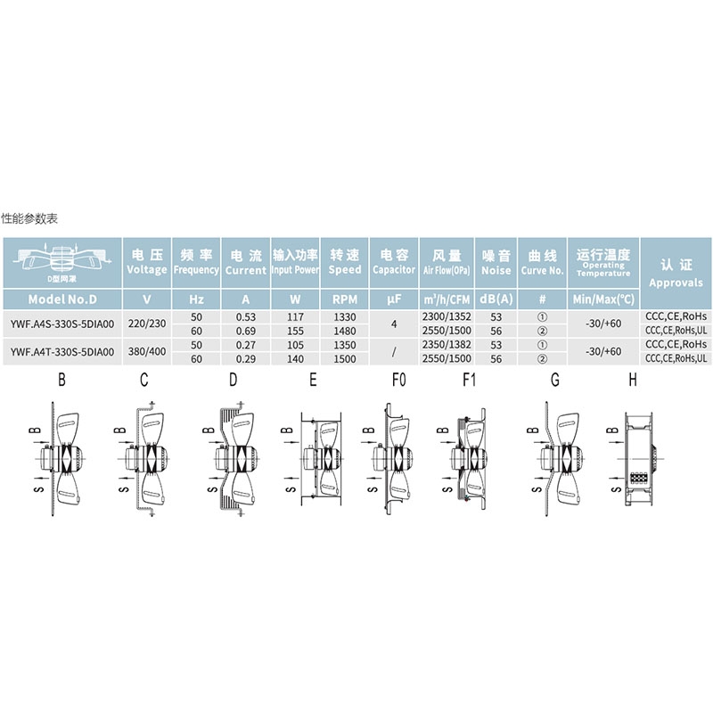 YWF.A4S-330S-5DIA00全新固定式抗震冷凝器蒸發(fā)器風機